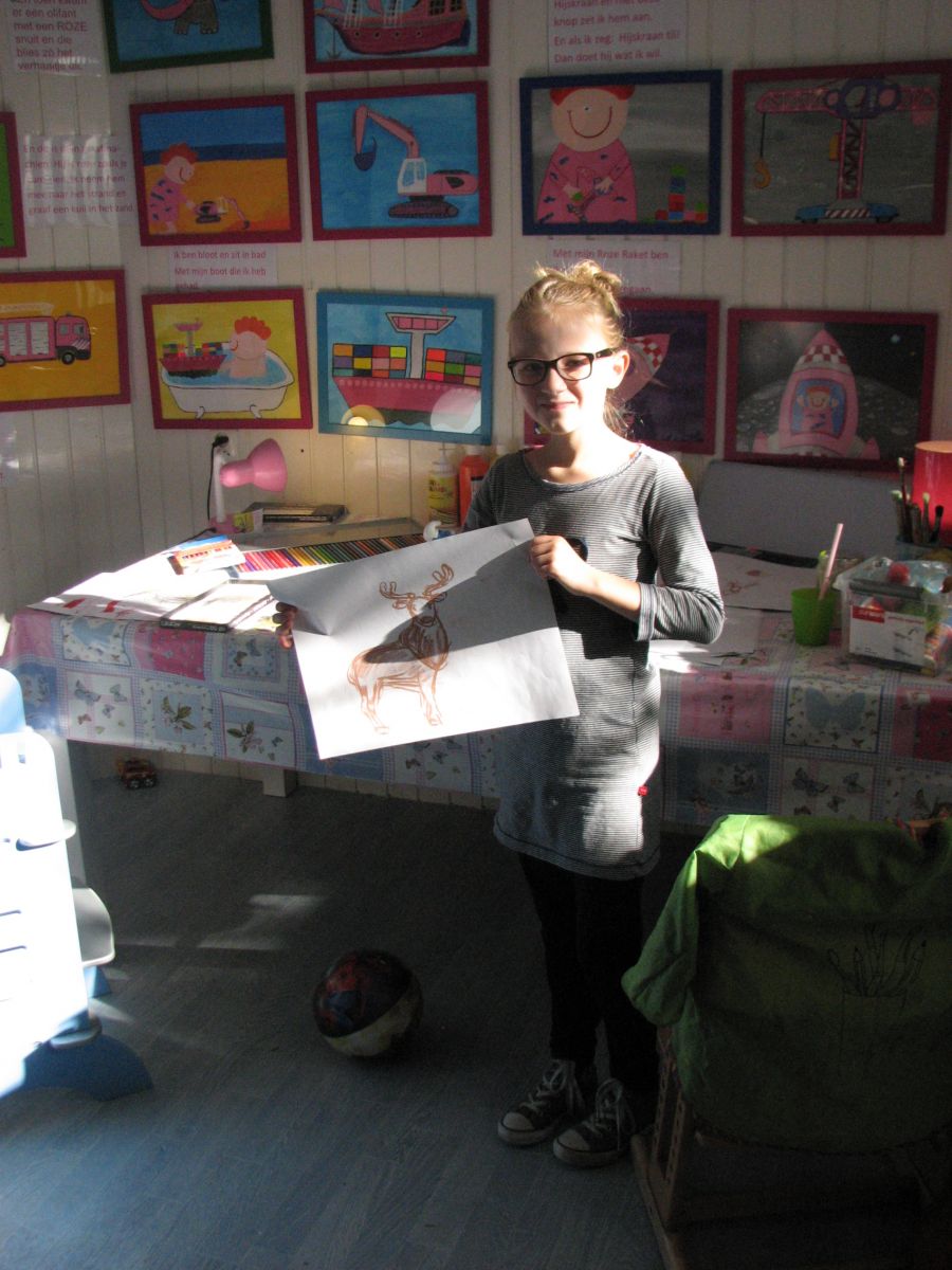 Eigenlijk kwam alles uit zoals ik had gehoopt. Een papa en zijn dochter en Joep hebben getekend en gekleurd. Kindjes hebben buiten gespeeld me alles wat ik had klaargezet en binnen met de voertuigen. De mensen die langskwamen bleven verrassend lang en daar heb ik prettige gesprekken mee gehad. Het persoonlijke contact met bezoekers, vrienden en familie op zo'n dag is heel fijn. Er is heel wat afgekletst en koekjes gegeten en koffie gedronken. Gewoon een gezellige middag al met al. Als het morgen weer zo gaat, dan ben ik dik tevreden.