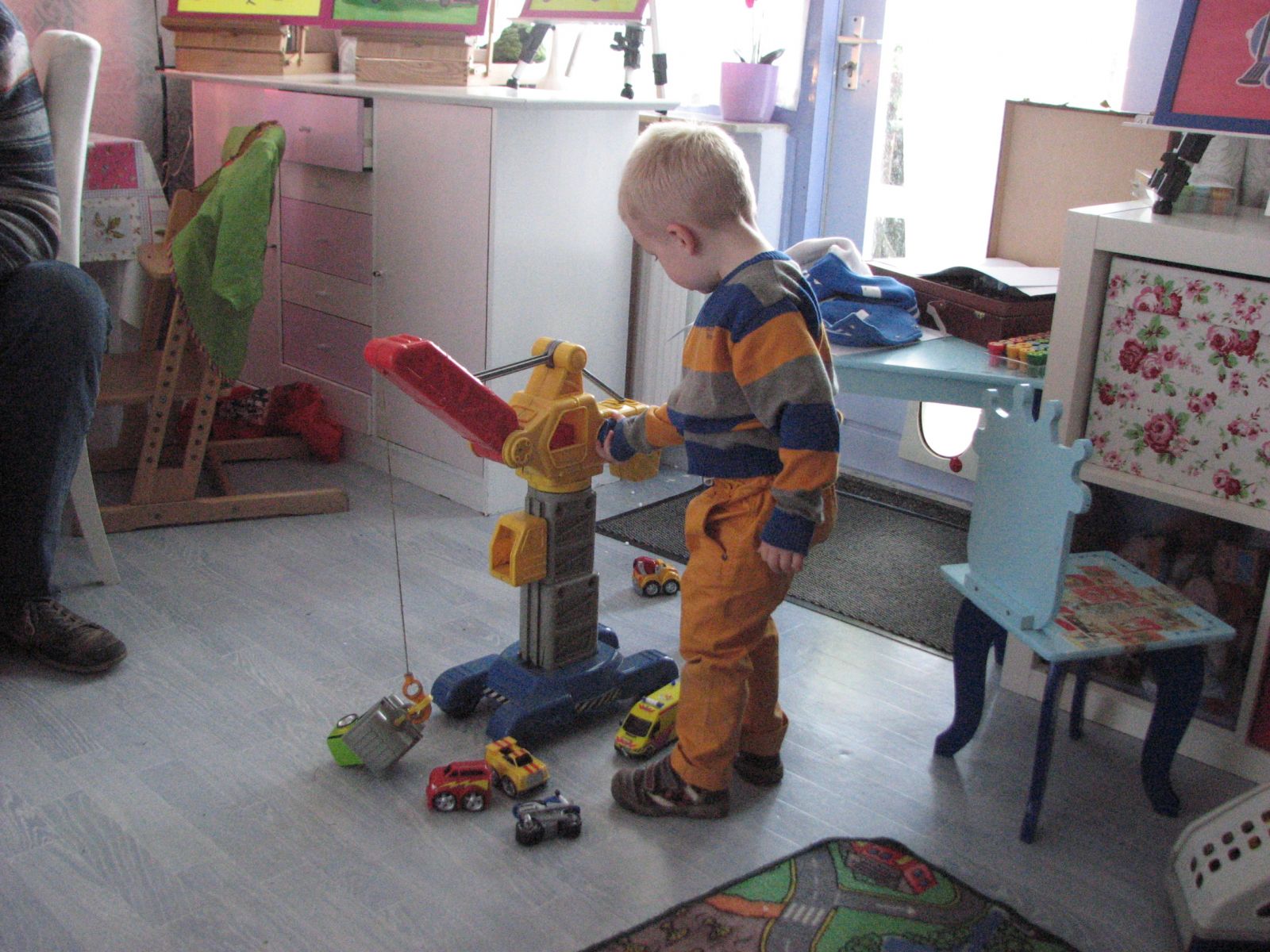 Joep verheugt zich al op de kindjes die komen spelen. Hij vindt het goed dat ze met zijn speelgoed komen spelen heeft hij gezegd. Ging gisteren ook prima. De hijskraan bleek bijvoorbeeld onweerstaanbaar voor dit peutertje van net drie.