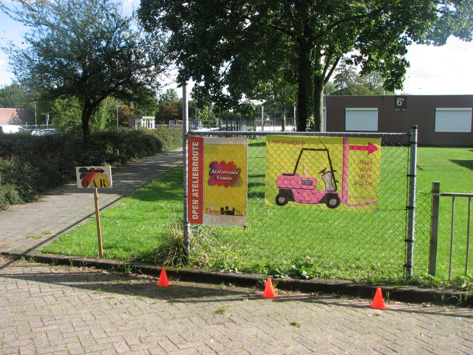 30 september 2012De eerste dag van Open Atelier Vianen was een succes. De bezoekersaantallen zijn boven verwachting. Het weer werkte ook goed mee: prachtige zonnige dag zodat de mensen heerlijk konden fietsen langs de ateliers. Buiten stonden een bord, banners, pijlen op de grond en een ezel met welkom zodat de locatie niet te missen viel.