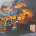 Brandend kantoor 20e eeuw in Vianen.