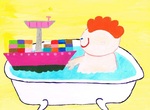 2013Peutertje Petertje speelt met zijn Roze Containerschip in bad.